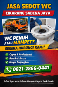 Dengan komitmen tersebut, Sabena Jaya hadir sebagai solusi terpercaya untuk mengatasi WC mampet, septic tank penuh, dan saluran limbah bermasalah di area Cikarang Selatan.
